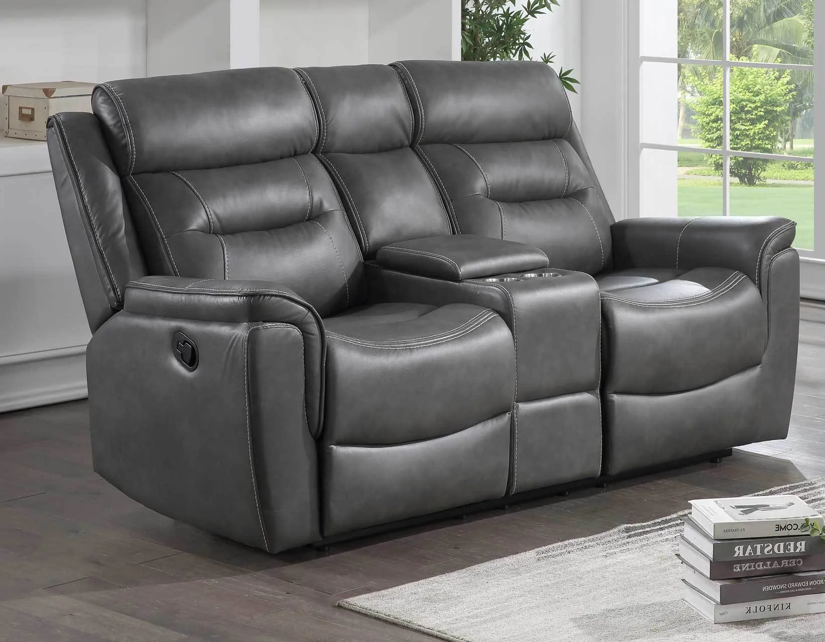 The Nash Manual Reclining Console Loveseat, Grey by Steve Silver may be available at Wright Furniture & Flooring in the