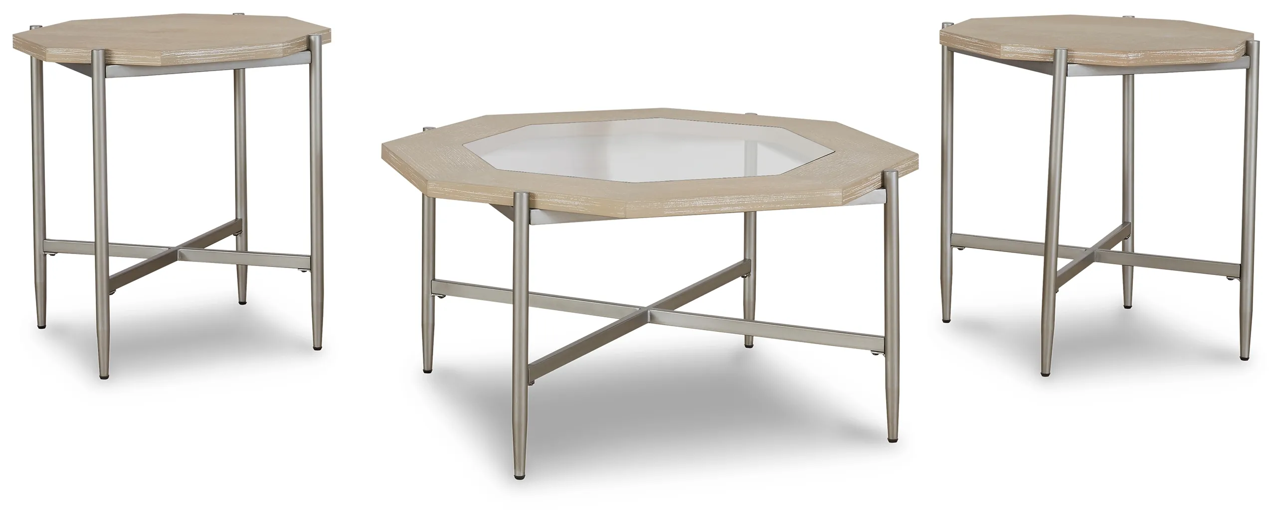 Striking and contemporary, this table set is a perfect balance of line and form. Geometric shapes are nicely paired in the hexagonal top and X-shaped base. A glass insert adds to the coffee table's distinctive composition. Perfect for smaller space living, this set can be arranged in a variety of configurations to suit the moment or your mood.