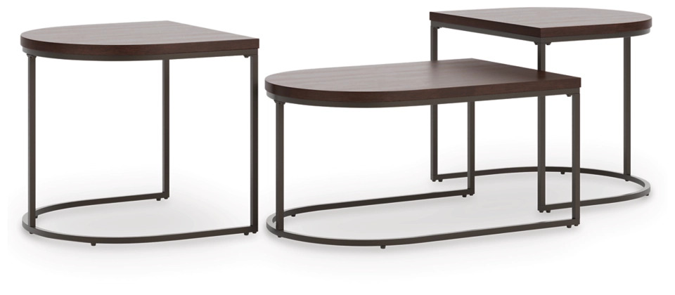 This table set introduces a luxe vibe to your living room. It pairs a mixed-material look in dark tones with a geometric design for a new take on contemporary convenience. And the two end tables can nest with the coffee table, crafting a unique setup ideal for tiered decor displays.