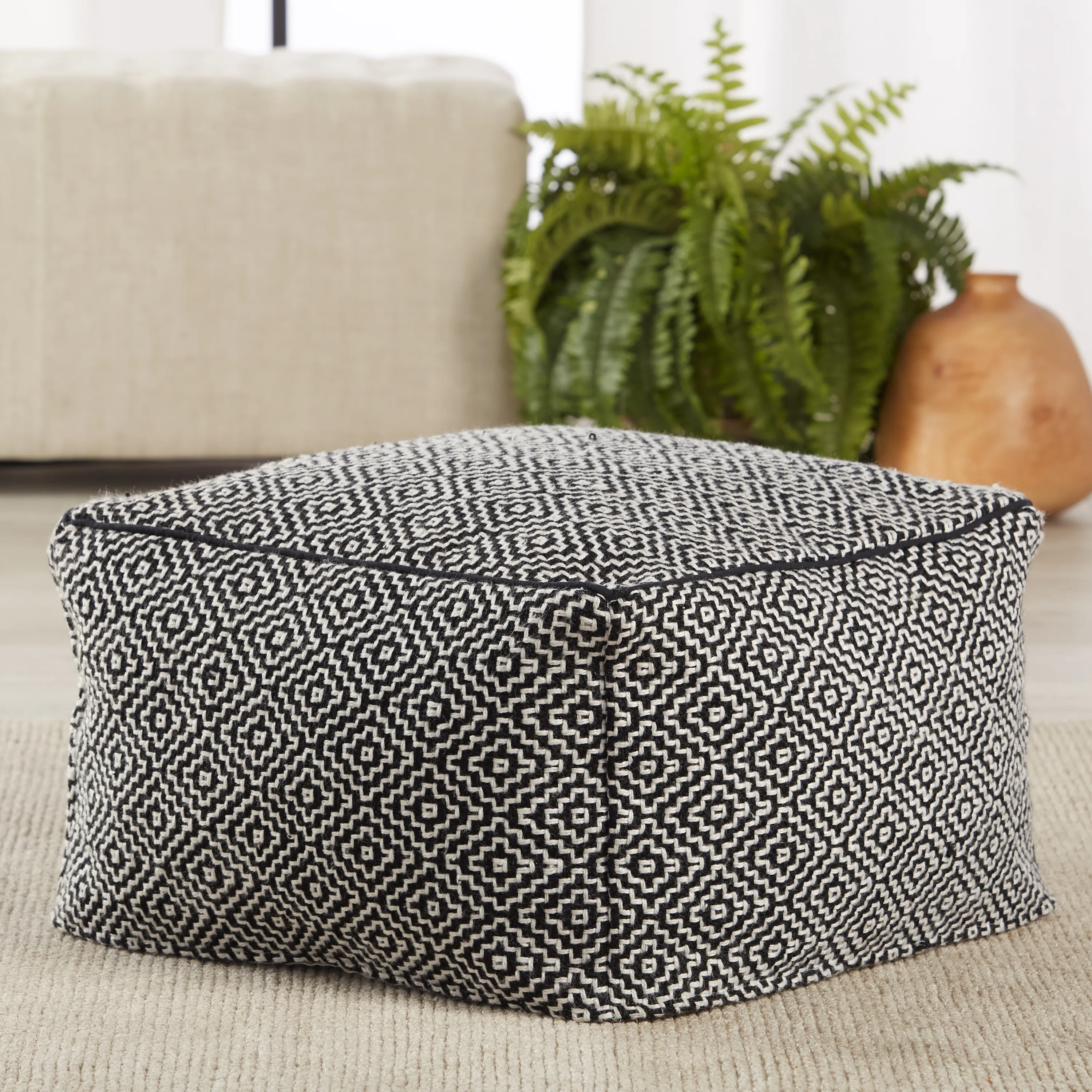 Merida Loranca Indoor/ Outdoor Trellis Black/ White Cuboid Pouf by Jaipur Living