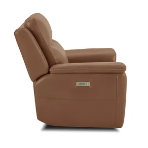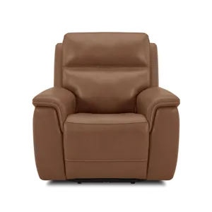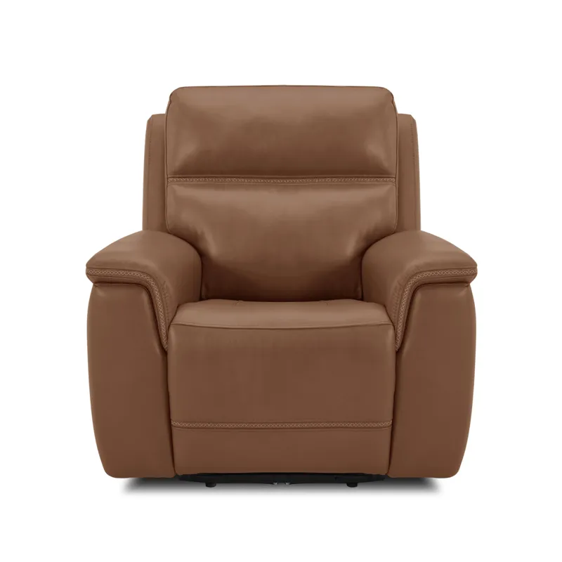 Transform your living space with the Sawyer power recliner with power headrest and lumbar, a perfect blend of comfort and style. This stunning design features high-quality, gray top grain leather upholstery with unique cross-stitching and a distinct arm silhouette, adding a sophisticated touch to any room. Customize your comfort with power recline, headrest and lumbar support at the touch of a button and experience Zero Gravity reclining, relieving pressure from your joints. Designed for durability and longevity, this recliner includes Flexsteel’s patented Blue Steel Spring™, providing unmatched seat comfort and durability that you can count on.