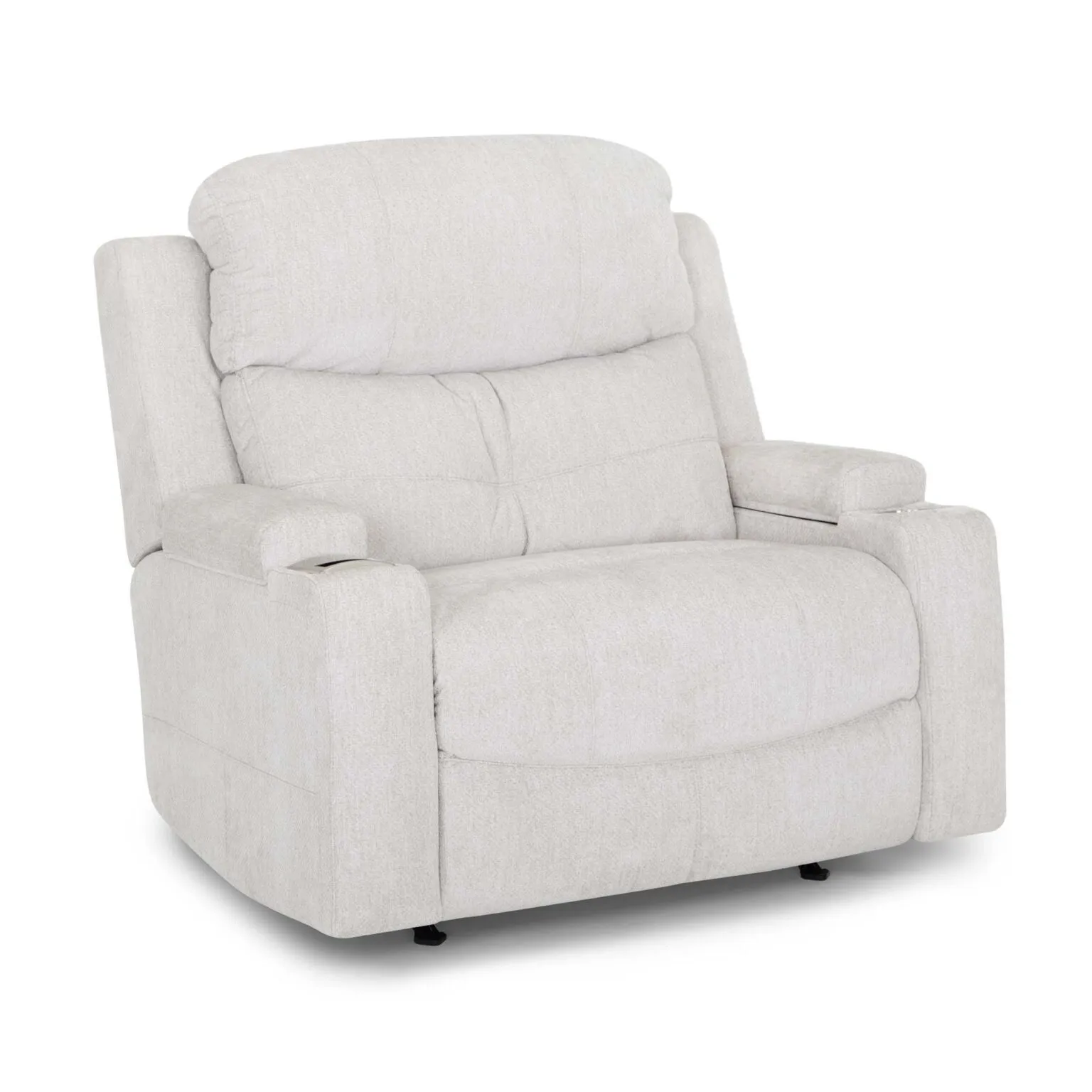 Arlington Fabric Chair & a Half Recliner w/ Power Recline, Dual Storage Arms, Cupholder, Slot Charger, USB, & Frosty Fridge