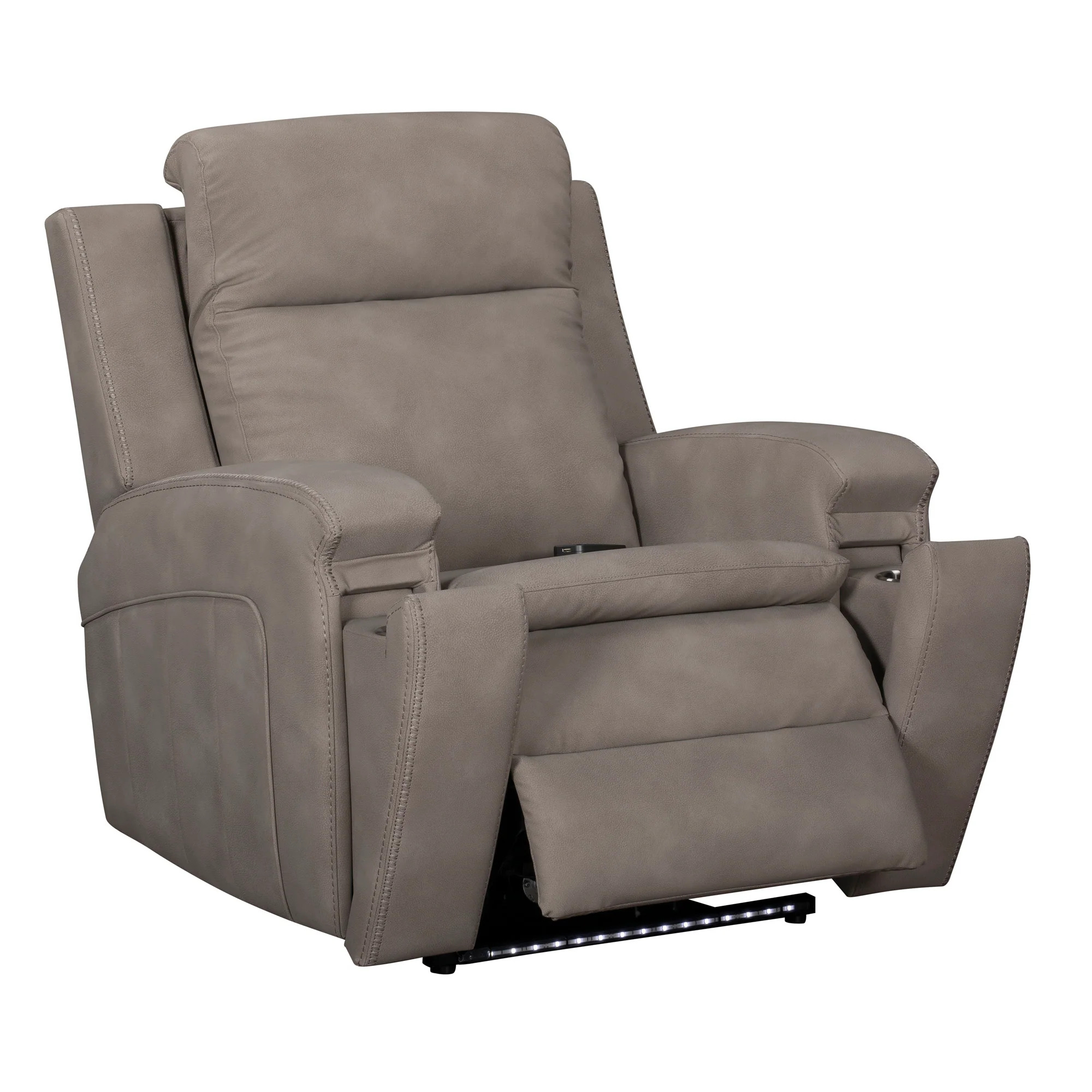 Experience comfort and convenience with the feature-packed Armstrong recliner. Designed with power recline, adjustable lumbar support, and an independent headrest, it adapts to any position. Durable synthetic leather adds a sleek look, while built-in heat, massage, ambient lighting, and smooth gliding motion enhance relaxation. A simple remote puts control at your fingertips.