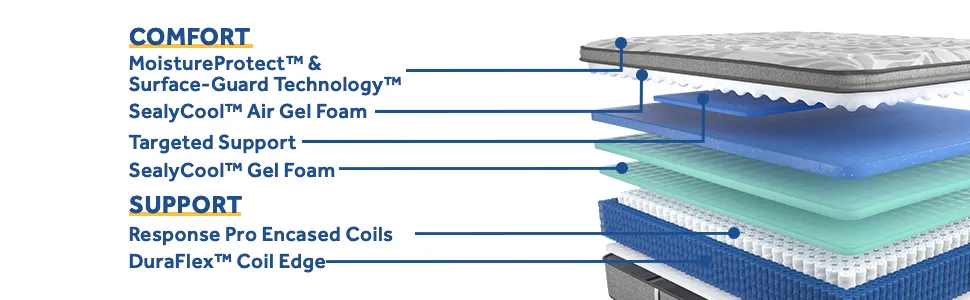 The trusted motion-reducing springs and targeted memory foam support of similar Posturepedic® Spring mattresses, upgraded with the option of a soft PillowTop. A reinforced edge improves durability, while cover treatments help to keep you cool, and the mattress protected. Available in a TightTop in a Soft, Medium, or Ultra Firm feel, a Faux EuroTop in a Soft, Medium, or Firm feel, and a PillowTop in a Soft or Medium feel.