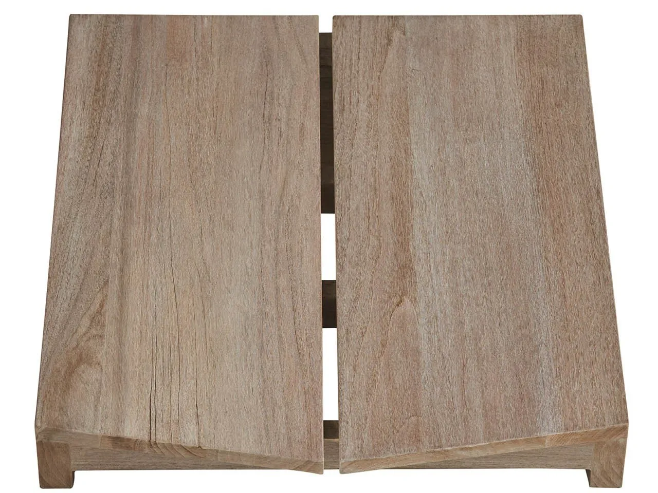 Relax and put your feet up with the Saratoga Ottoman. Featuring the collection's signature angled lines and wide teak planks, this comfortable piece offers a touch of coastal charm to your outdoor space. Crafted from solid, warm weathered teak for durability and timeless style.